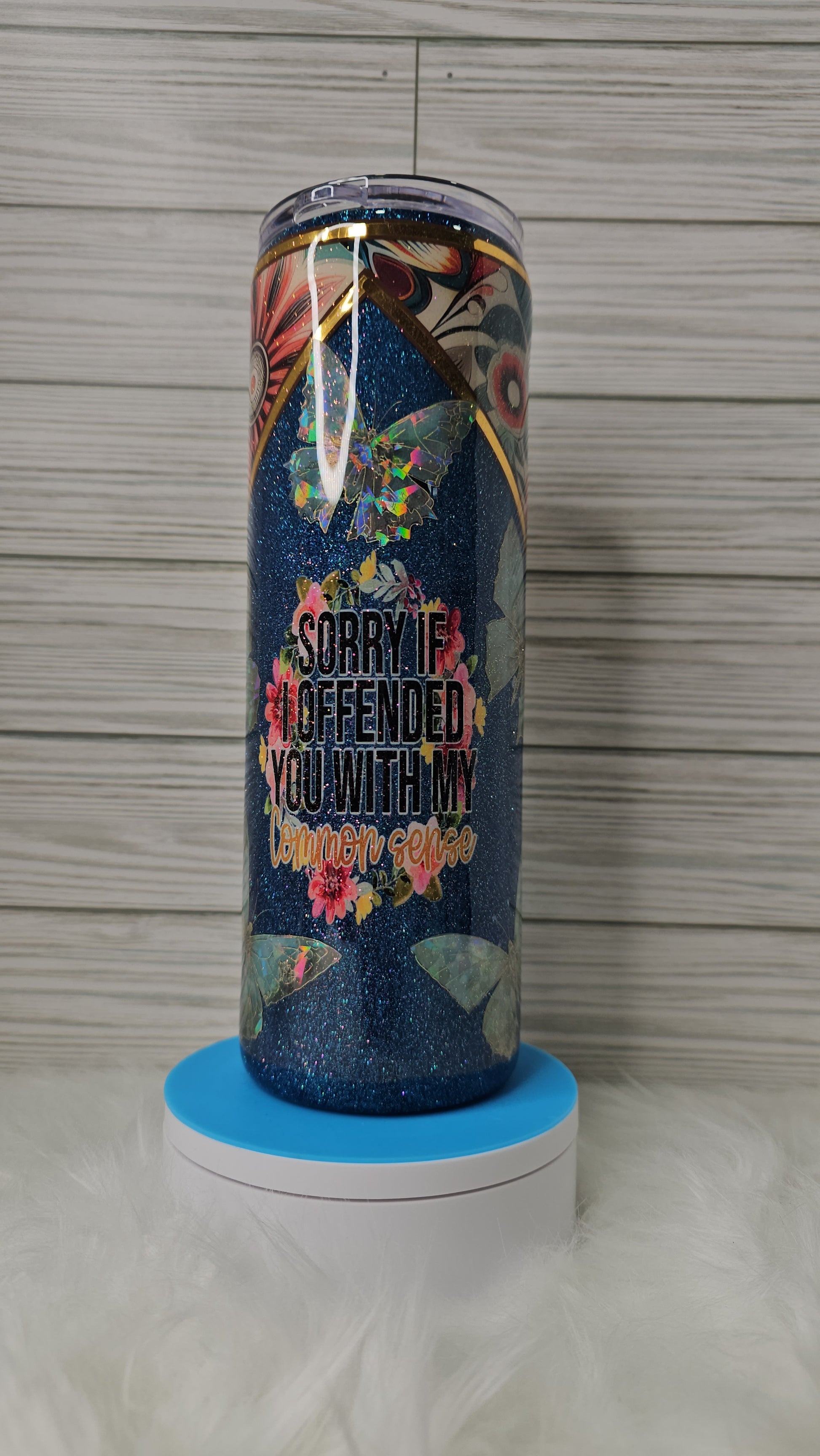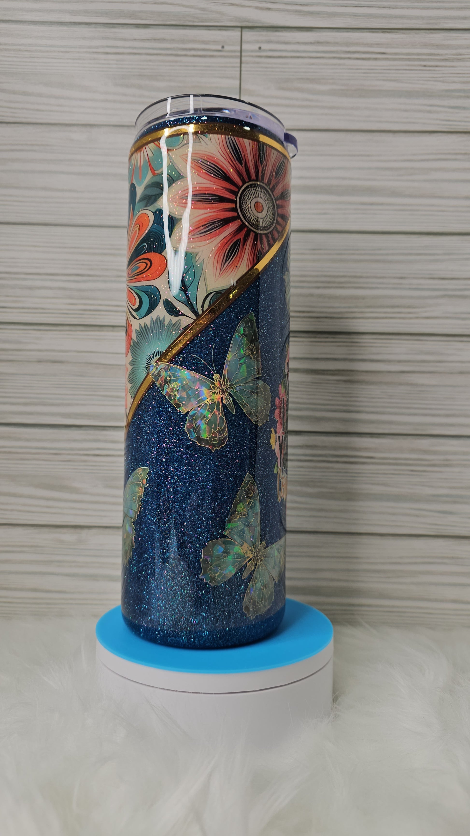 30oz Skinny Vinyl Glitter Floral V-split Epoxy Tumbler